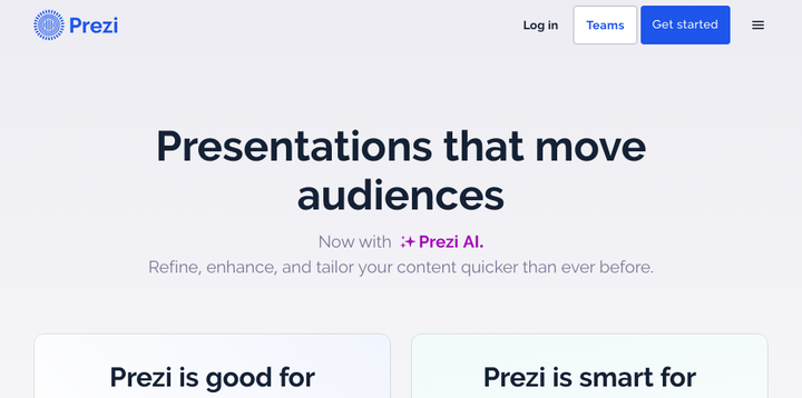 Prezi es una plataforma online para la creación de presentaciones interactivas. Su interfaz es simple e intuitiva, permitiendo a los usuarios diseñar presentaciones visuales impresionantes con facilidad. Prezi se destaca por su enfoque no lineal, donde los usuarios pueden moverse libremente por el lienzo de la presentación, creando una experiencia más dinámica. La versión gratuita de Prezi ofrece una amplia gama de plantillas y la capacidad de compartir tus presentaciones en línea. Aunque la versión de pago ofrece más funciones, el acceso gratuito proporciona suficientes recursos para crear presentaciones efectivas y atractivas.